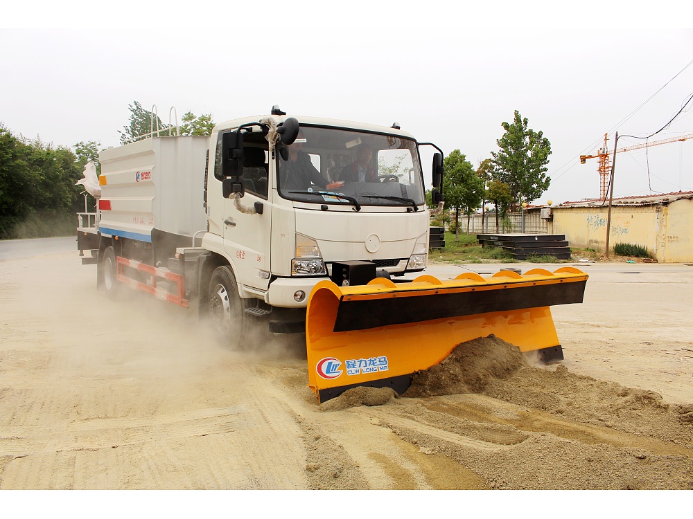 东风天锦KS版多功能除雪车的用途是清除道路上的冰雪,广泛使用于高等级公路、城市道路、机场、广场、风景区道路的除雪、融雪、除冰作业,相对于人工除雪,使用机械除雪具有更优的时效性,大幅提高除雪效率,减少人工劳动强度。使用东风天锦KS版多功能除雪车可以在冬季期间投入它们来确保道路上冰雪的清除以及行车的安全。除雪车安装的推雪铲或扫雪滚刷具有越障功能,能够很好的处理各种路面的雪和冰,如浮雪,薄雪,薄冰等,同时它可以在凹凸不平的路面行驶,作业及回避路障,工作效率高。