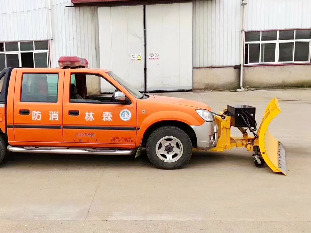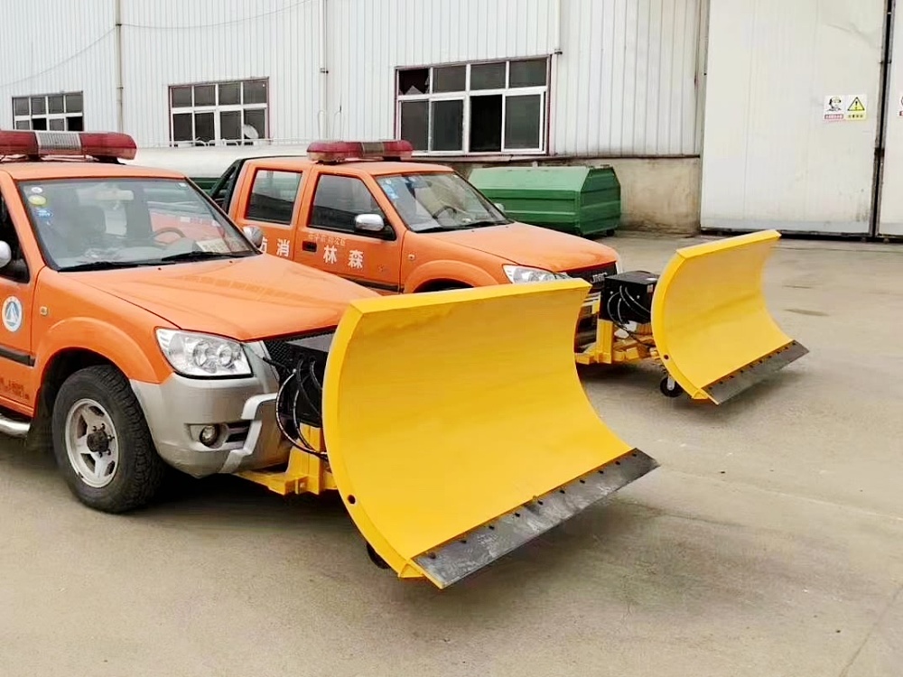 可安装在各类轻、中、重型货车上,除雪时雪铲下放。除雪效率高,除雪干净;汽车前进时如果遇到障碍物,雪铲会自动翻转避开,待越过障碍物后,在拉簧作用力下雪板会自动复位;除雪过程中,积雪会飞向路边。 三、除雪铲用途: